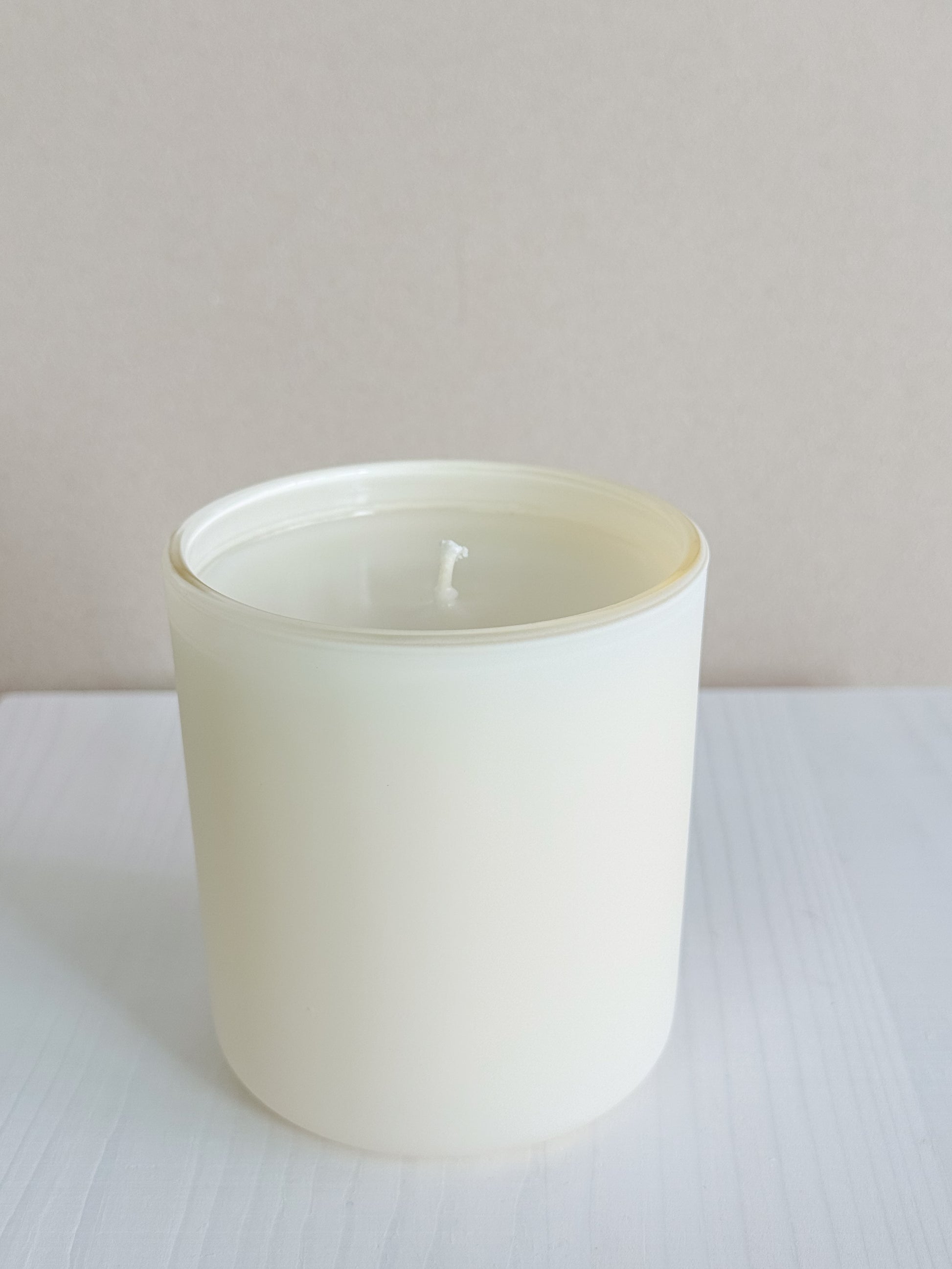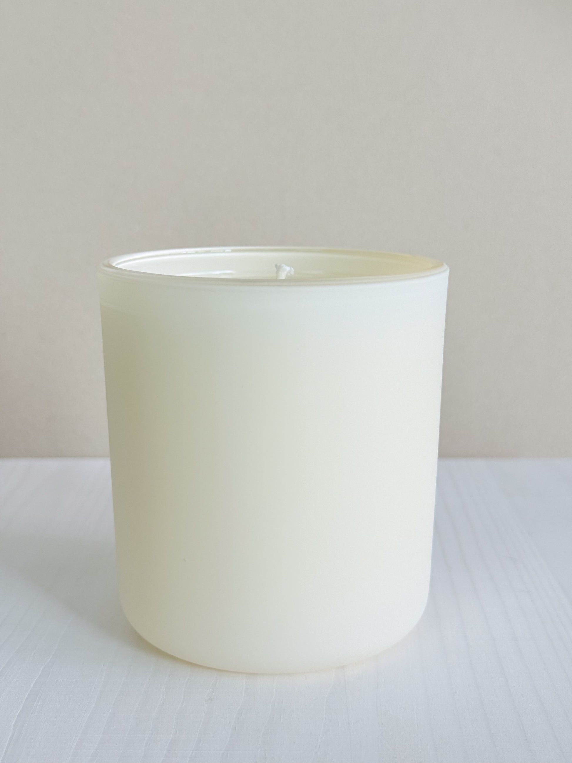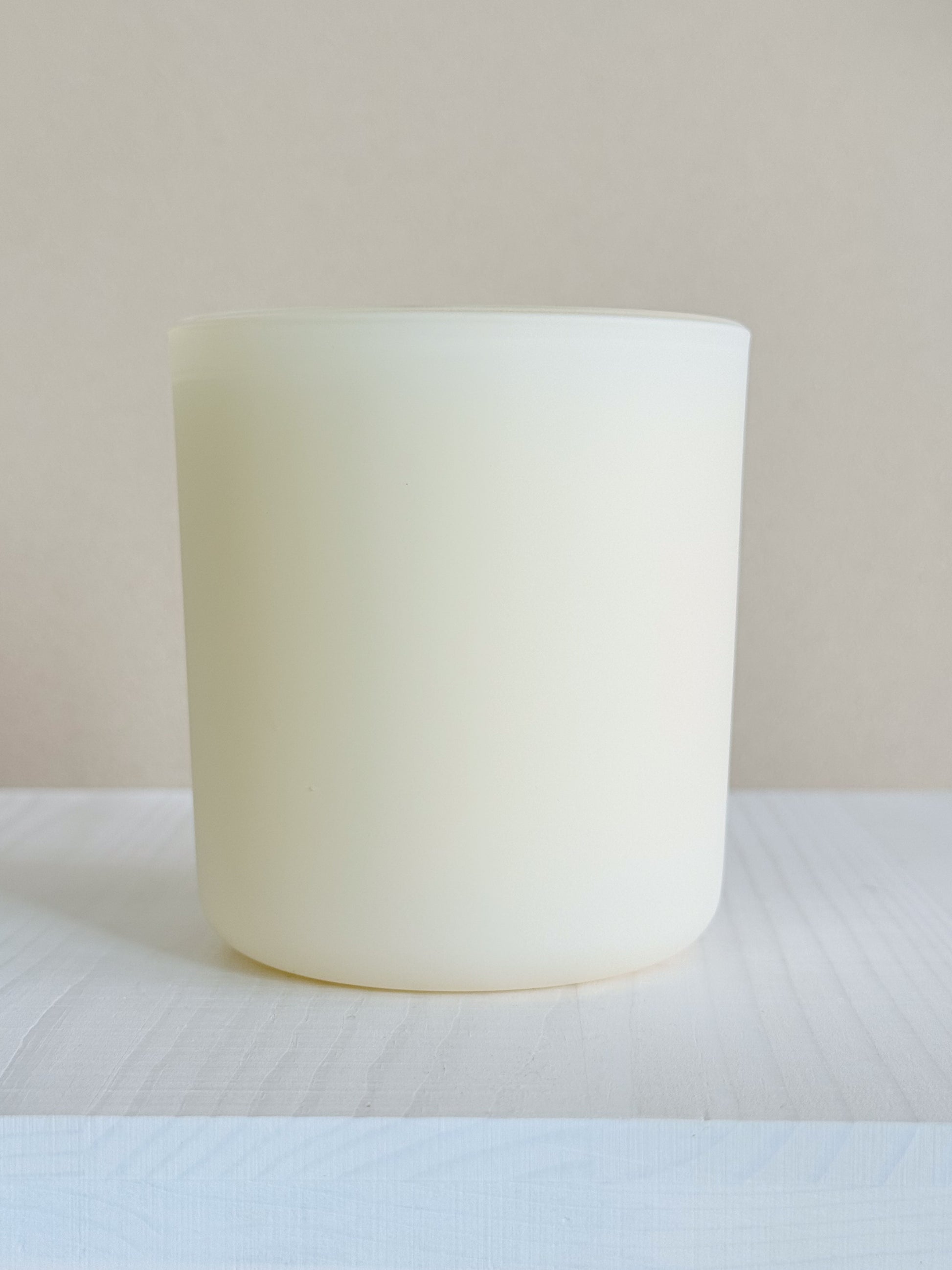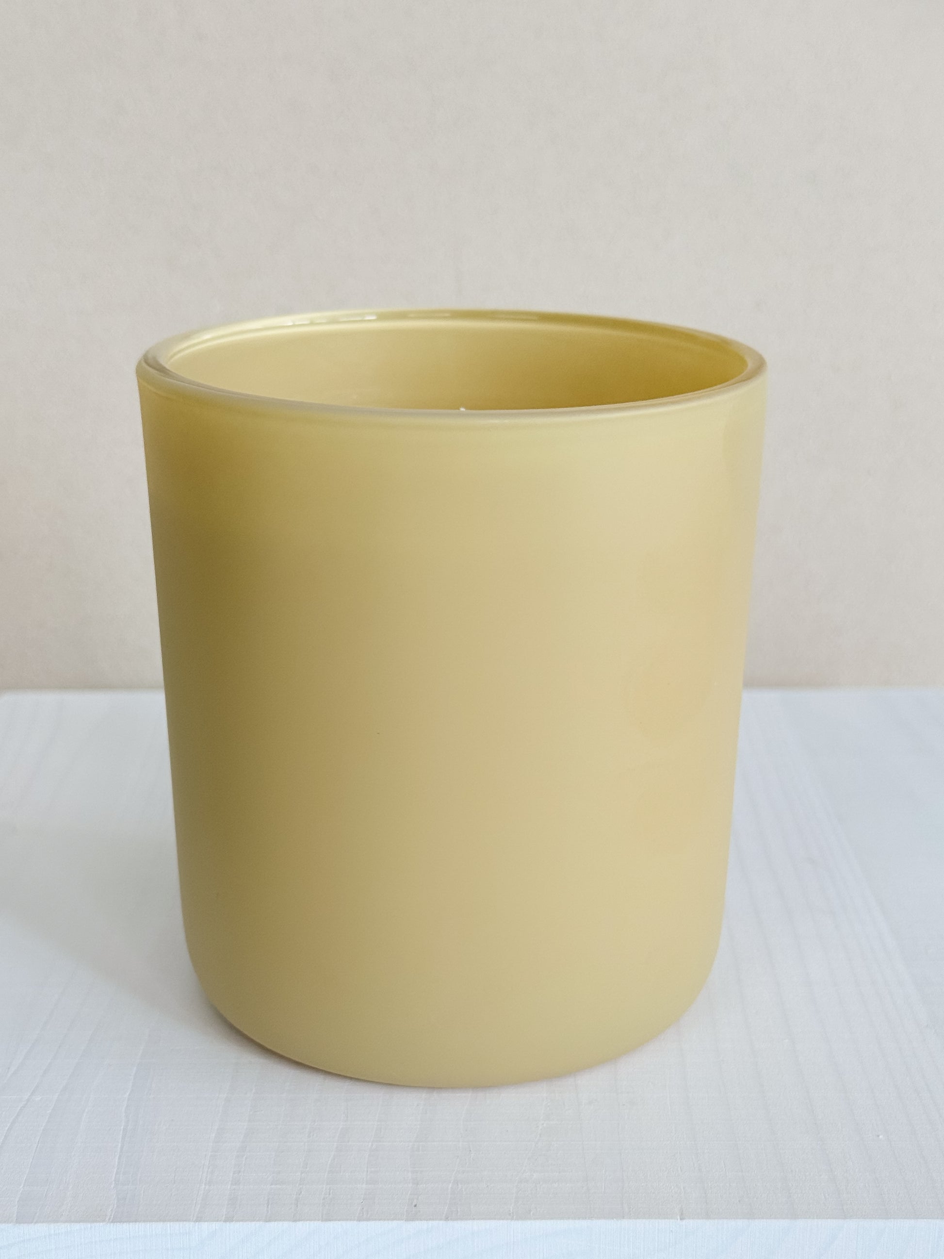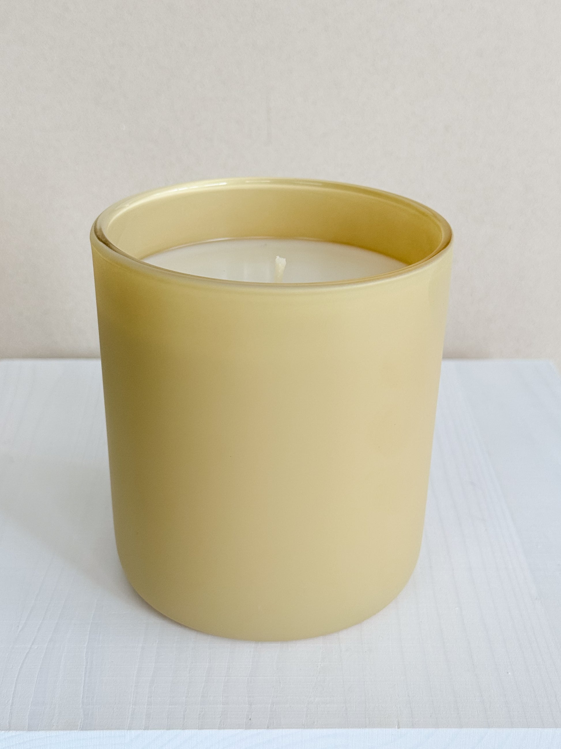 12oz candle in a matte yellow glass vessel.