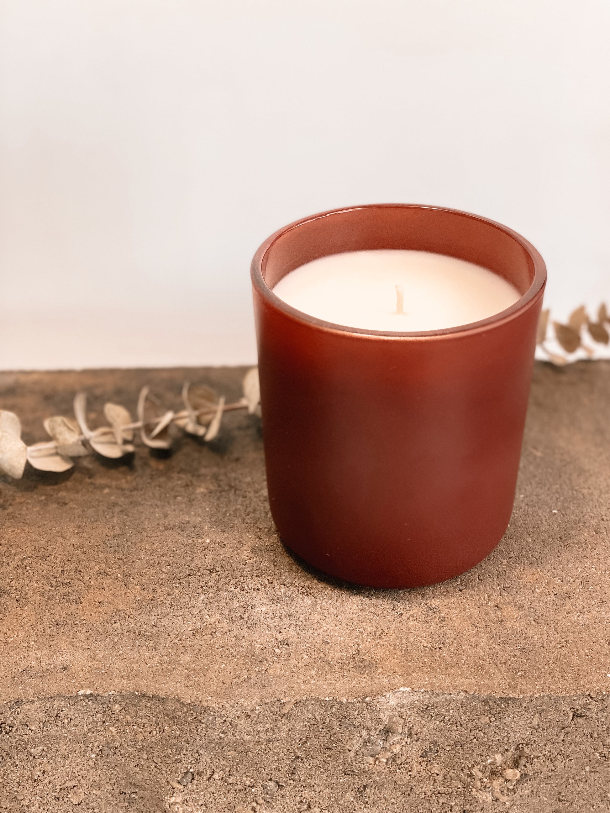 12oz candle in a matte red glass vessel.